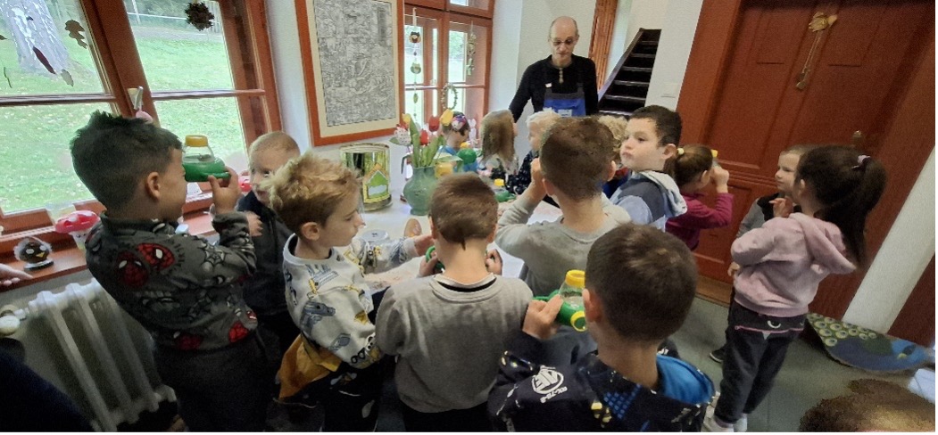 Az erdészház foglalkoztató termeiben gazdag élmények fogadtak bennünket: megcsodálhattuk a Bükk hegység madár- és vadvilágát fotókon és preparátumokon keresztül, valamint látócsövek segítségével közelebbről is megfigyelhettük a rovarokat. A kézműves foglalkozás keretében az újrahasznosítás jegyében színes baglyokat készíthettek a gyermekek különféle természetes és újrahasznosítható alapanyagok felhasználásával, fejlesztve kreativitásukat és környezettudatos szemléletüket.