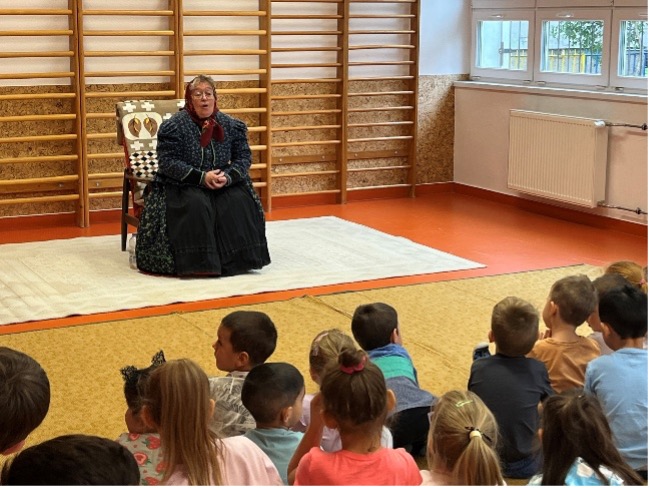 Szeptember 30.-án a Magyar Népmese Napja alkalmából érkezett hozzánk, Kovács Lászlóné Edit néni, aki a délelőtt folyamán mesélt a gyermekeknek, majd ezt követően közös éneklésre és táncra invitálta a gyermekeket, felnőtteket egyaránt. Bemutatta, hogyan is mesél egy igazi mesemondó, a maga ízes és varázslatos egyéniségével. A gyermekek figyelemmel, érdeklődve, aktívan vettek részt a programban. Jó hangulatban, vidáman telet a délelőtt.