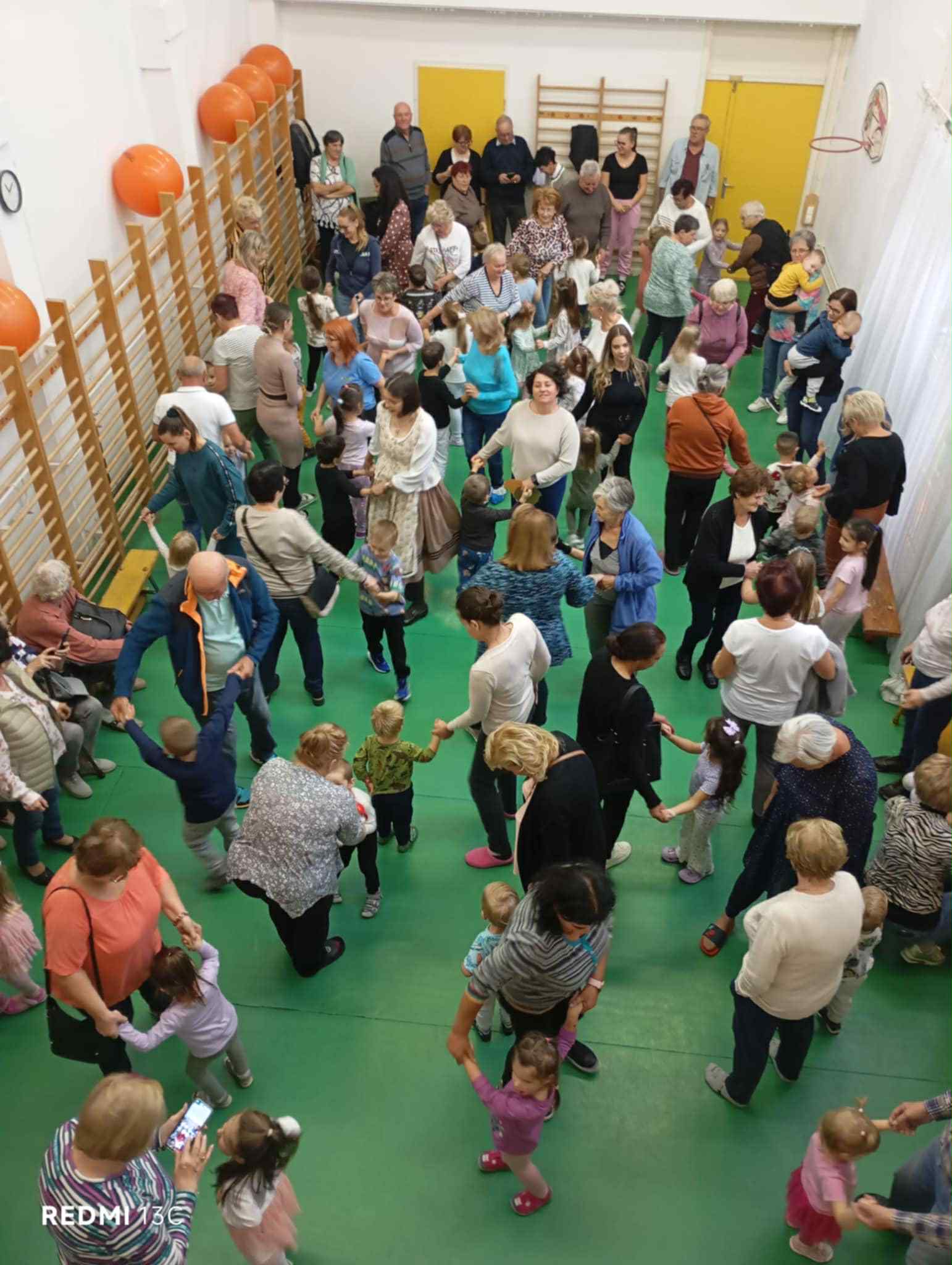A csoportszobákban vidám közös játékok és kézműves tevékenységek várták a résztvevőket, ahol generációk találkozhattak játékosan, mosollyal és sok-sok szeretettel. A délelőtt fénypontja a táncház volt, ahol kicsik és nagyok együtt ropták a táncot, igazi örömünneppé varázsolva