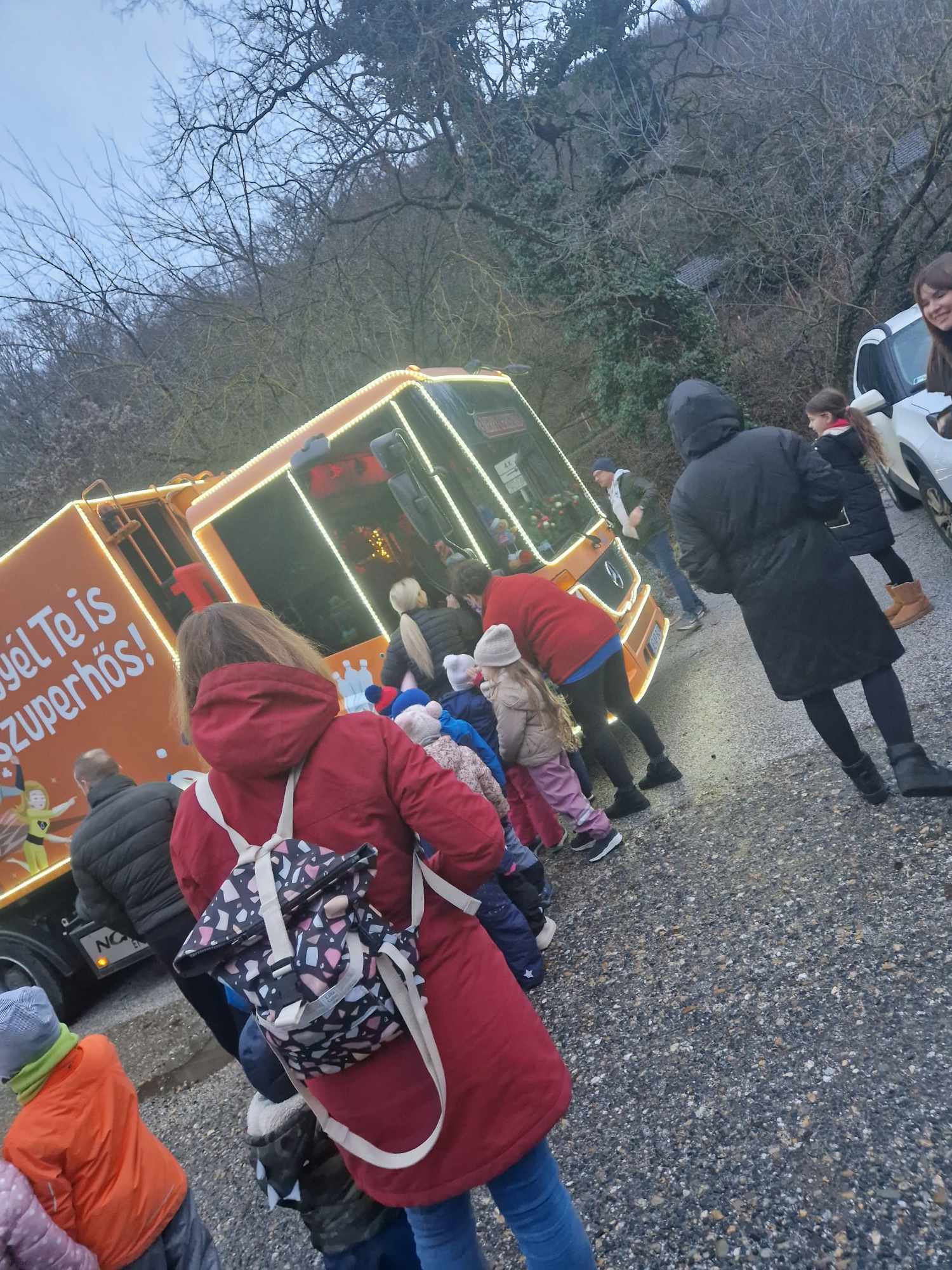 Kedd délután nagy öröm várta a gyermekeket a MIÓVI Várhegy Úti Tagóvodájában! Ellátogatott hozzánk a MiReHu Nonprofit Kft. kívül-belül karácsonyi fényekkel feldíszített kukásautója. A gyermekek megcsodálhatták és kipróbálhatták az adventi hangulatot fokozó, díszes, fényárban úszó autót, mely mosolyt és örömöt csalt a szemükbe. A „Legyél te is szuperhős” feliratú kukásautó azon program része, melynek célja felhívni a figyelmet a fenntarthatóságra és a szelektív hulladékgyűjtés fontosságára. Ezzel a célkitűzéssel tagóvodánk is azonosul, hiszen a fenntarthatóságra nevelés és szemlélet formálás fontos szerepet játszik intézményünk mindennapjaiban.