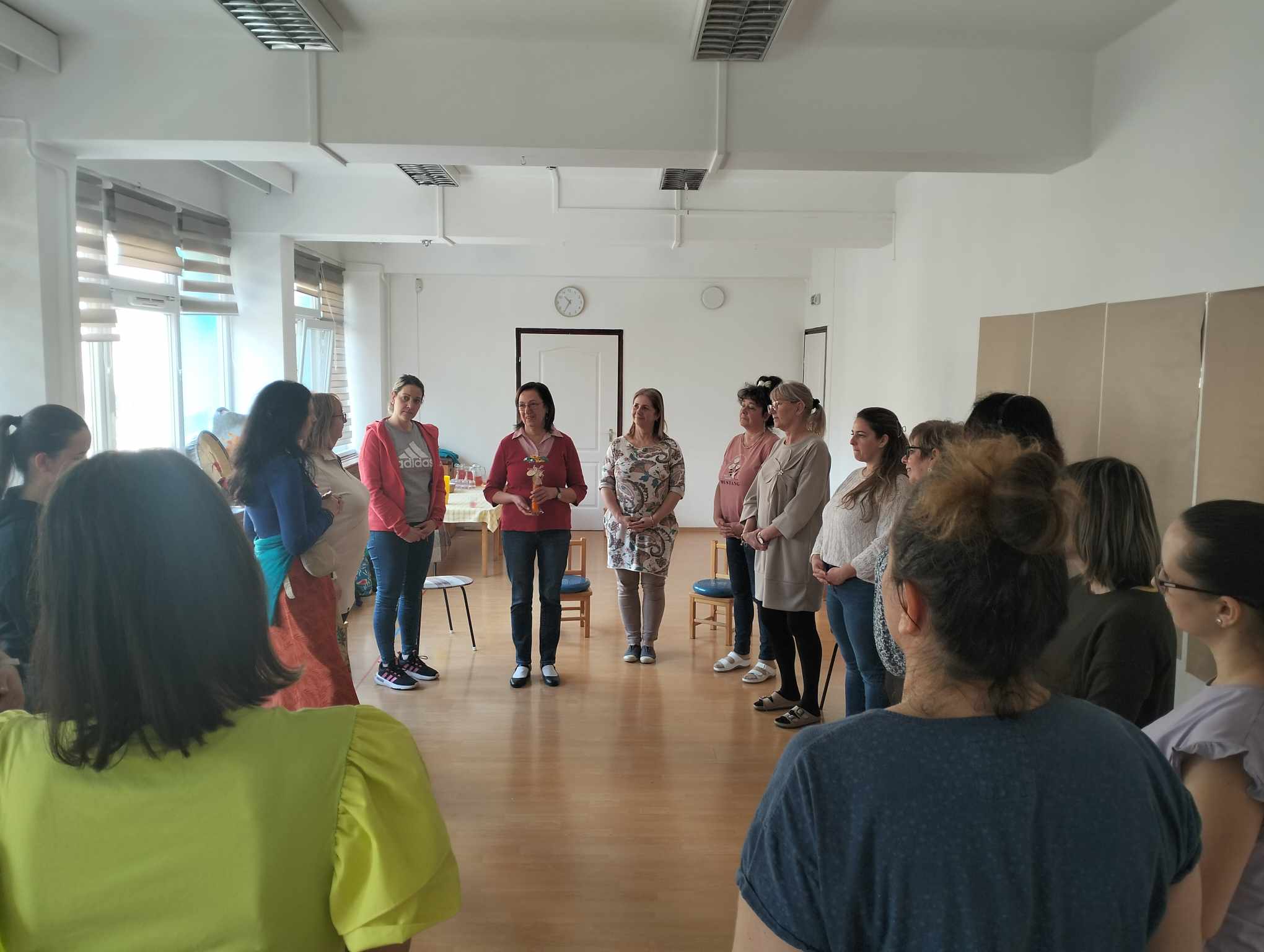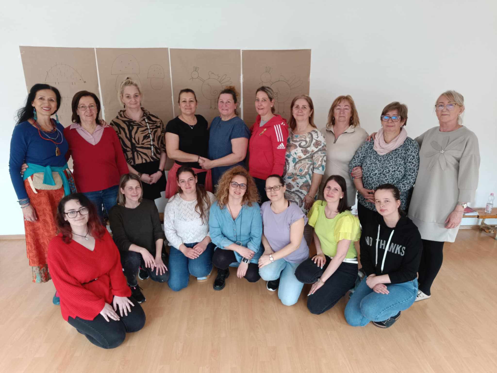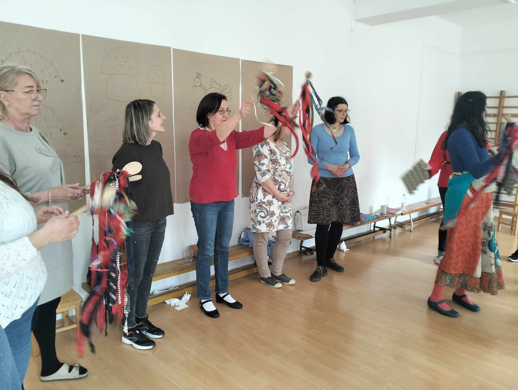 A képzés Benedek Krisztina Mária Mesterfokozatú néptánctanár, „A népművészet ifjú mestere”, népi énekes, a gödöllői Chopin Zenei AMI ovis Zene-Csoda-Vár foglalkozásainak szakmai vezetője, létrehozója, és művelője, táncelméleti szakíró, a Csodabab Tanoda alapítója vezetésével nagyon jó hangulatban zajlott. A Galga-menti saját gyűjtésű „gyermekversikék”-ből, mondókákból kaptunk egy tavaszi csokrot. Megismerkedtünk különleges hangszerekkel és azok használatával, a játékfűzés módszertanával, rigmusrajzolókkal. A nemzeti ünnephez kapcsolódóan, patkoltunk lovat, meneteltünk. Mondókáztunk, énekeltünk, táncoltunk, rajzoltunk, közben olyan tudás birtokába jutottunk, amit napi munkánk során átadhatunk a gyermekeknek, és szüleiknek. Óvodánk néphagyományőrző értékeket képvisel, így a képzés és az azon elhangzott ismeretek mindnyájunk számára jól beépíthető lesz tervezésünk és hagyományőrző tevékenységeink során.