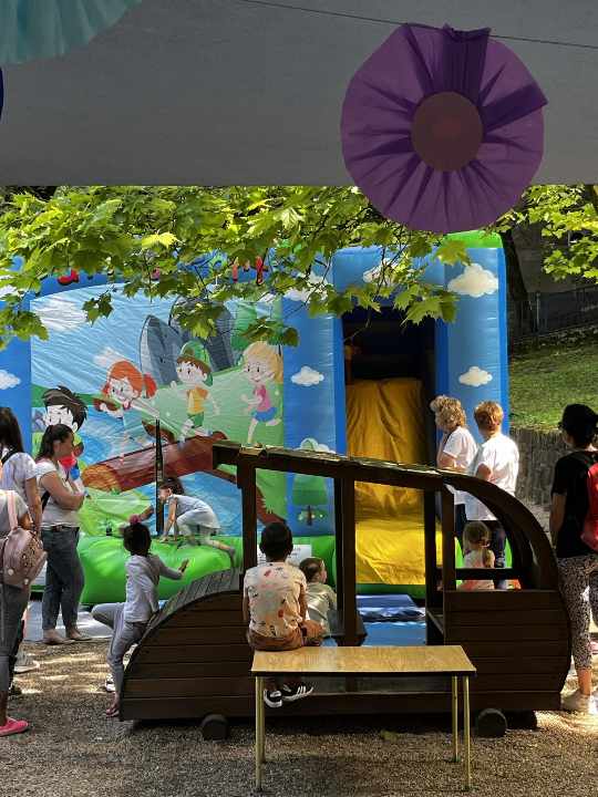 Következett, amit a legjobban vártunk, az ugráló vár. Türelmesen várakoztunk, amíg sorra kerültünk, de amikor végre bemászhattunk és ugrálhattunk nagyon jól éreztük magunkat, jókat kacagtunk közben.