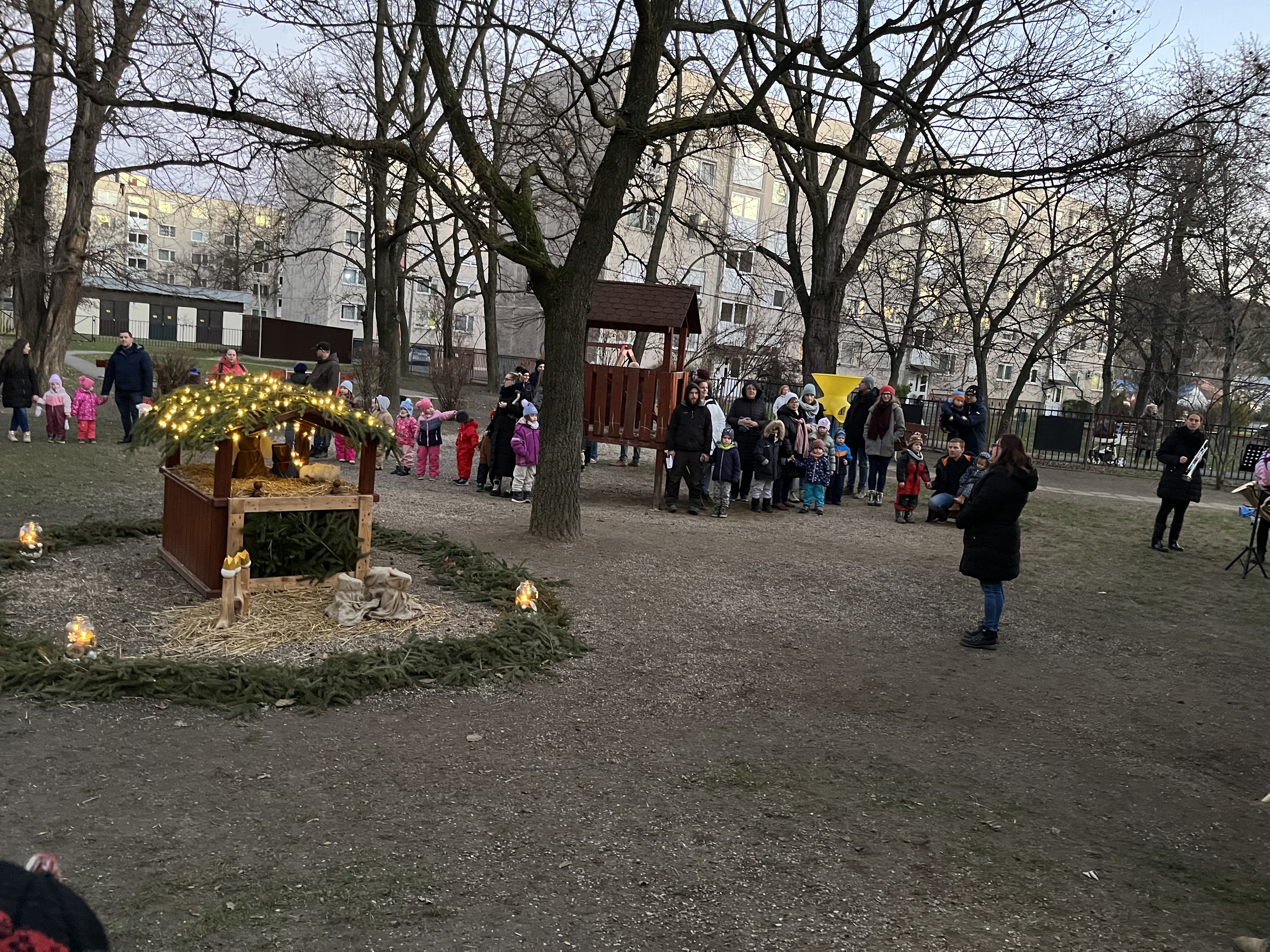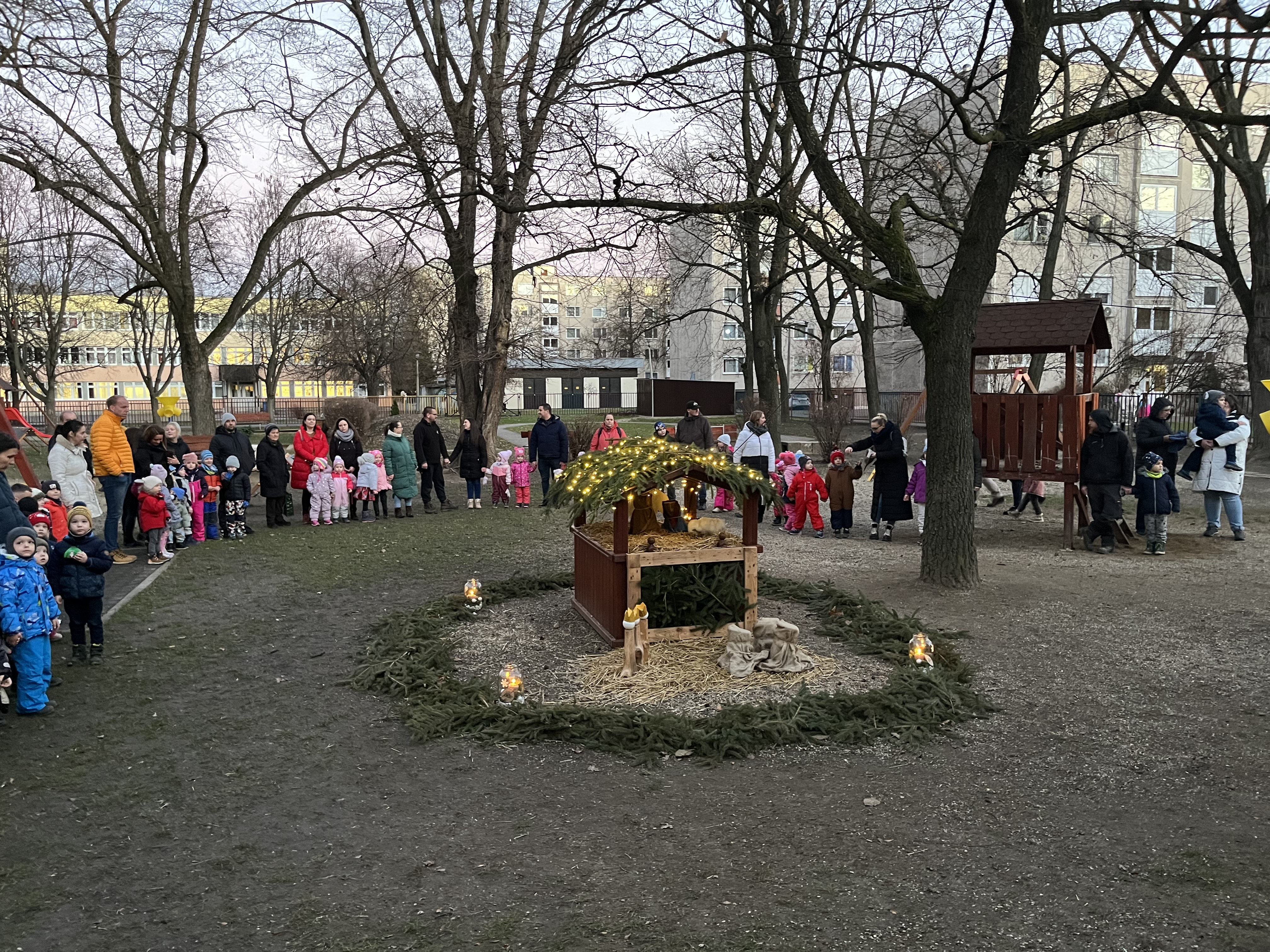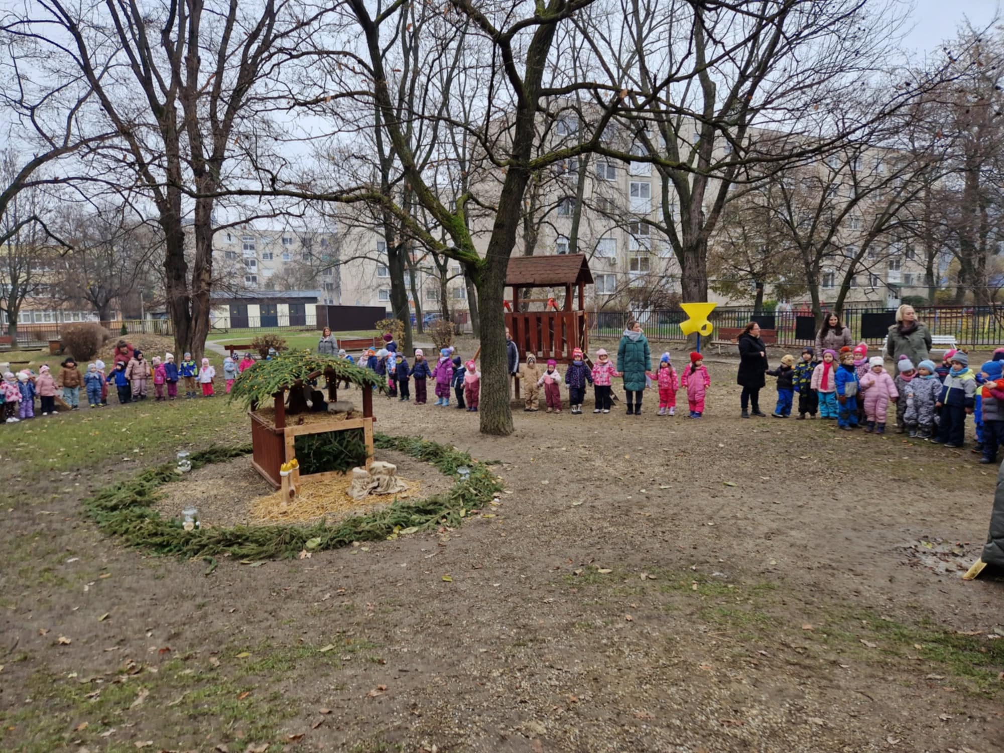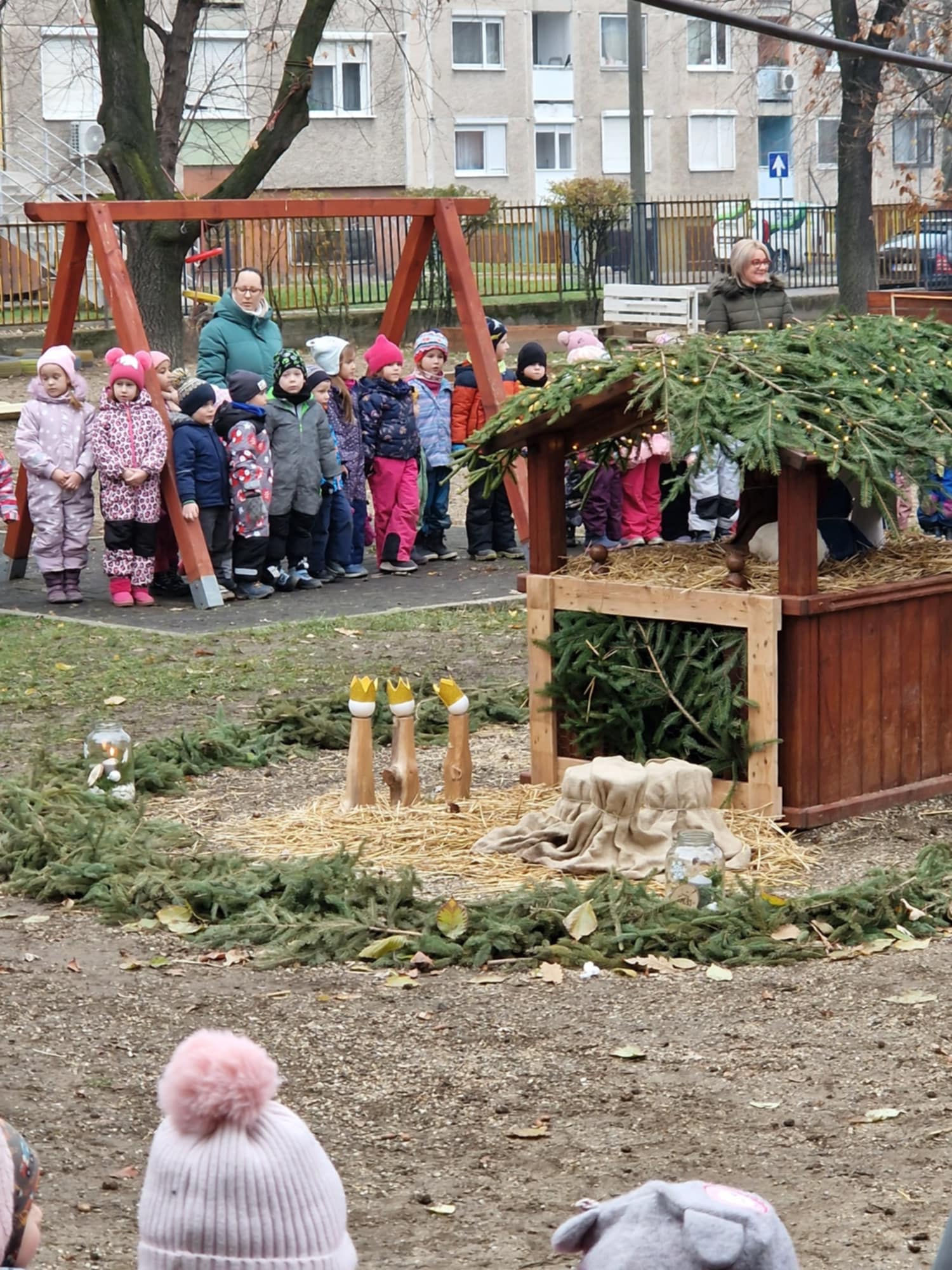 Idén immár ötödik alkalommal készítették el kreatív óvó nénijeink az óvoda betlehemét, amelynél ismét együtt gyújtjuk meg a fényeket a csoportokkal. A karácsonyi fények bevilágítják az udvarunkat és a szíveinket, tovább erősítve az ünnep hangulatát és közösségünk összetartozását.