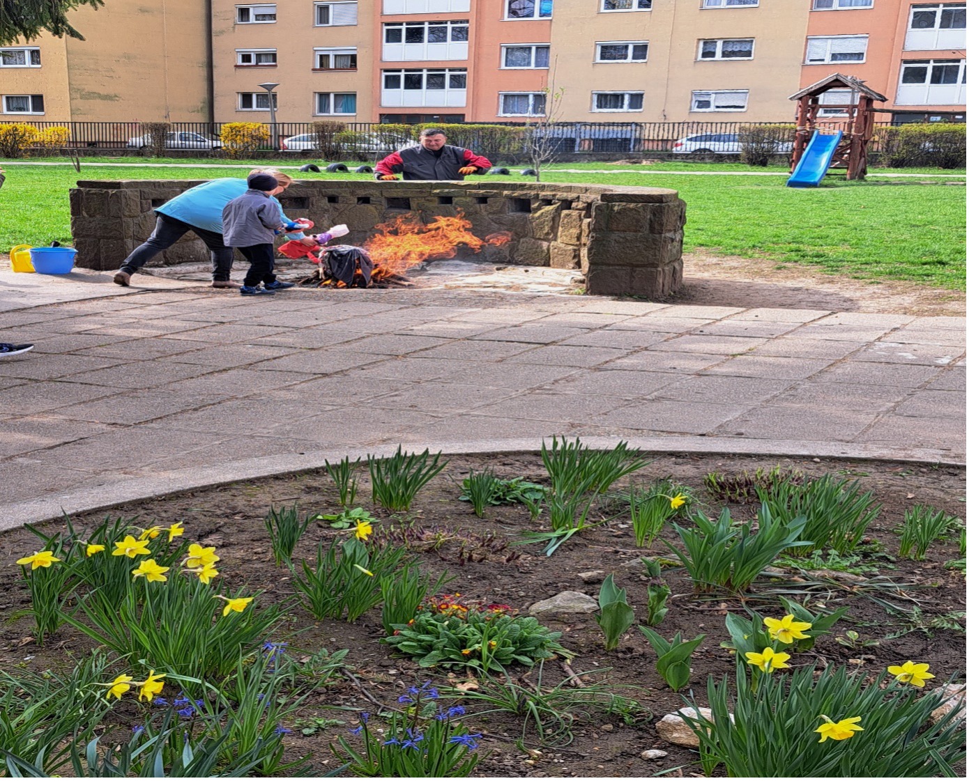 Mindig Húsvét előtt, virágvasárnap idején tartjuk ezt a hagyományt a gyerekek nagy örömére és a lakókörnyezetünk megörvendeztetésére.