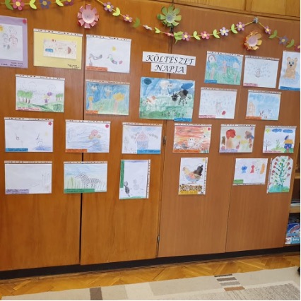 A versmondással párhuzamosan került sor a rajzpályázatra beérkezett alkotások értékelésére is. A gyermekek olyan verseket vagy verses meséket illusztráltak, amelyek különösen megérintették őket. A színes, fantáziadús rajzokból egy kis kiállítást is rendeztünk, annak