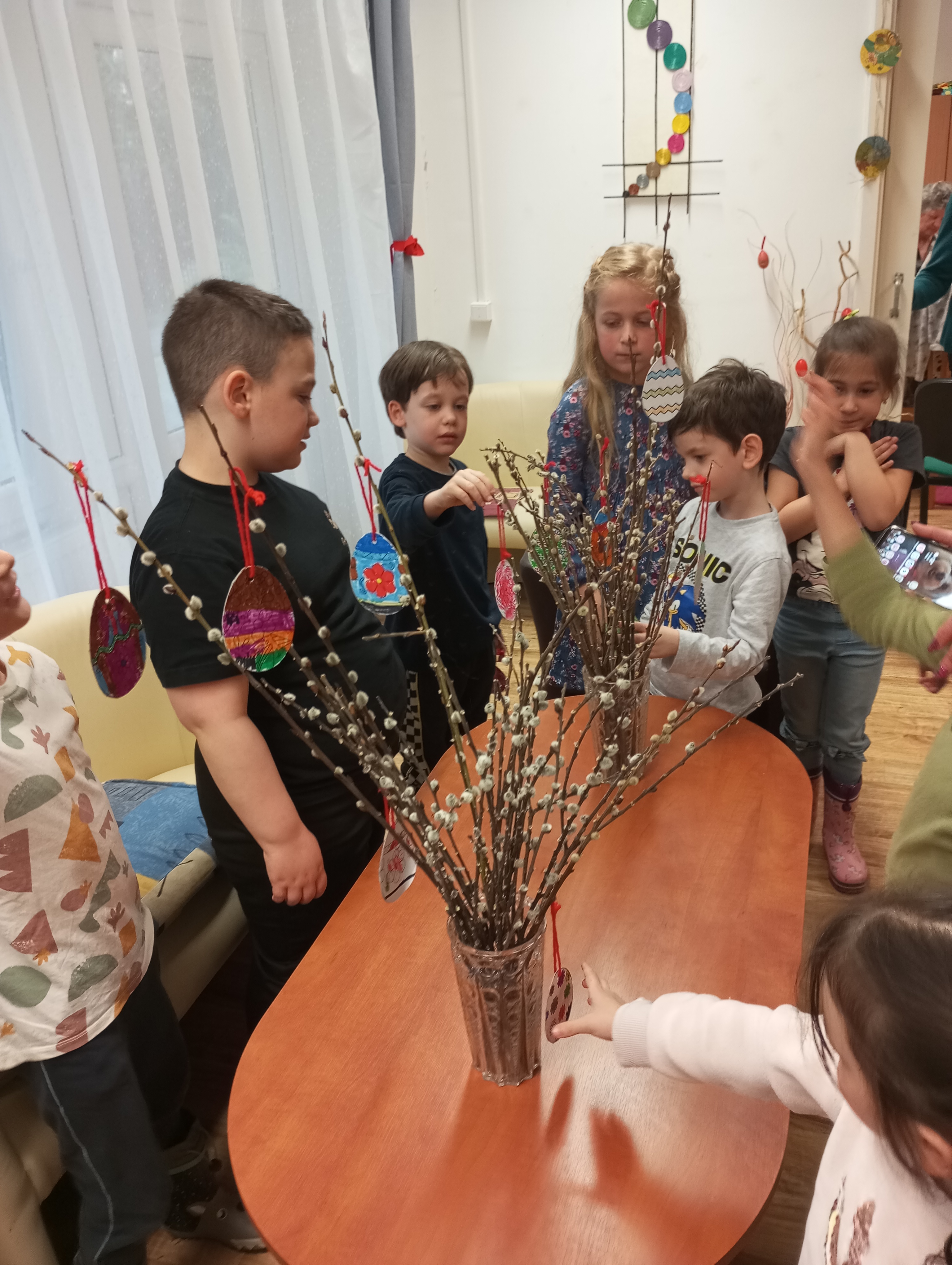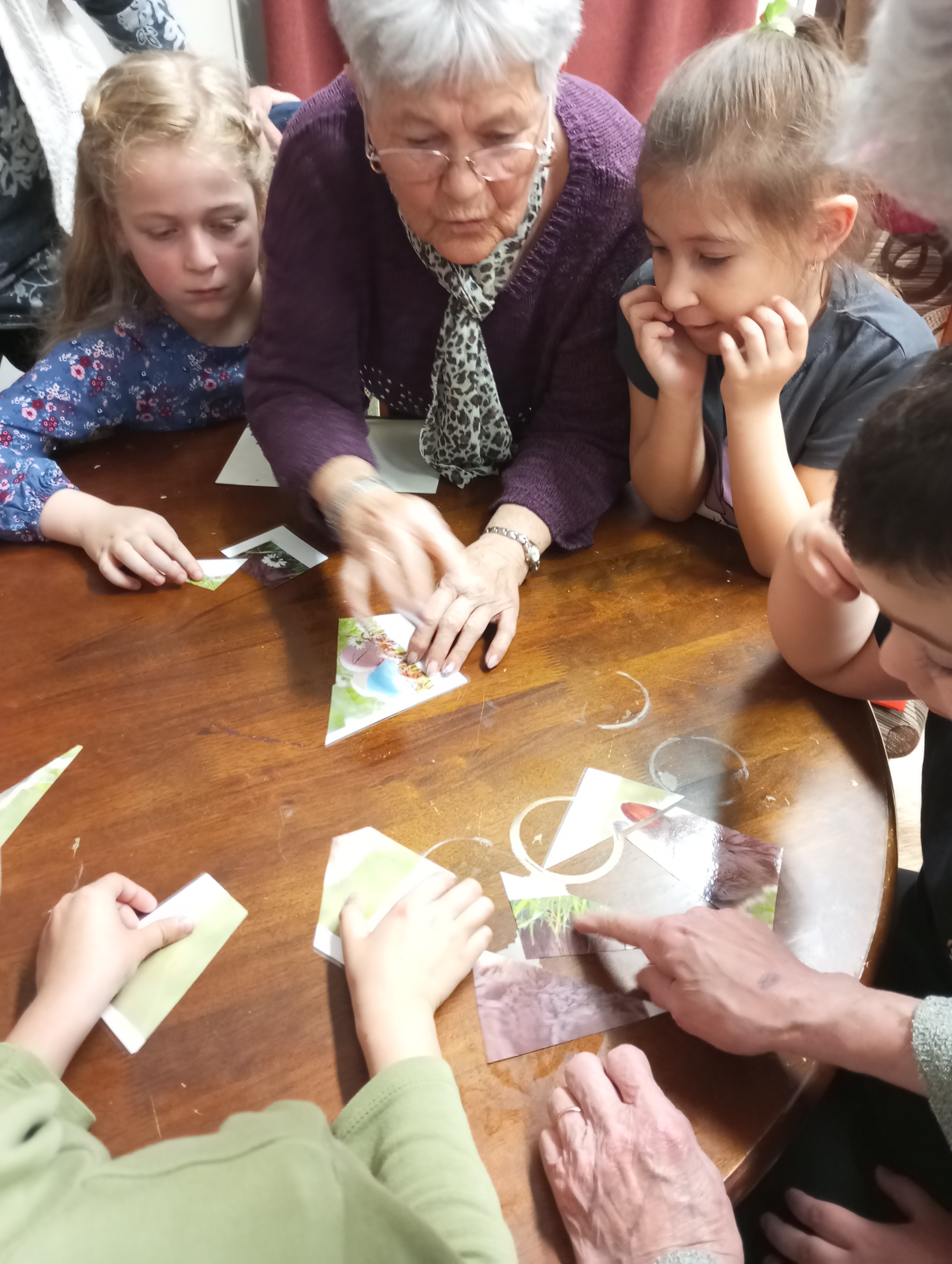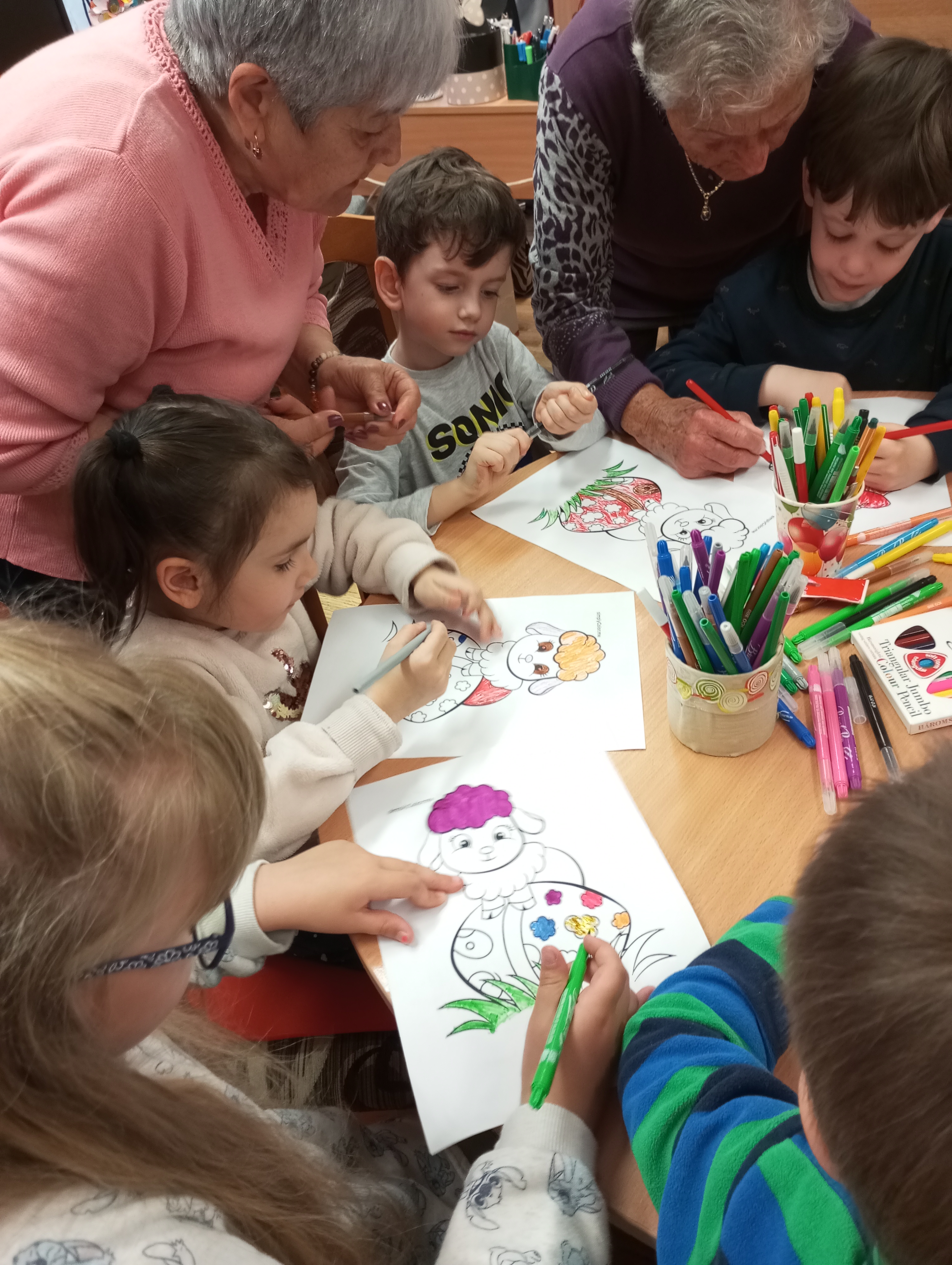 Áprilisban a Derűs Alkony Szolgáltatási Központba látogatott el csoportunk. Az idősek játékokkal és kreatív foglalkozással vártak minket a Húsvét várás jegyében. A húsvéti képekből készült kirakó együttes erővel állt össze, a színezés pedig kicsiket és nagyokat is egyaránt lekötött. Tojásokat is színeztünk, amikkel közösen díszítettük fel a közösségi térben lévő barkaágakat. A két generáció remekül egymásra talált, vidáman, jó hangulatban telt el a délelőtt. A gyermekeket finomságokkal és meglepetés plüss játékokkal ajándékozták meg vendéglátóink, a délelőtt megkoronázása pedig a csokitojás keresés volt. A rossz idő miatt erre az épületben került sor, de az élmény is maradandó volt a gyermekek számára. A szíves fogadtatást tavaszi dalokkal, locsolóversekkel köszöntük meg vendéglátóinknak.