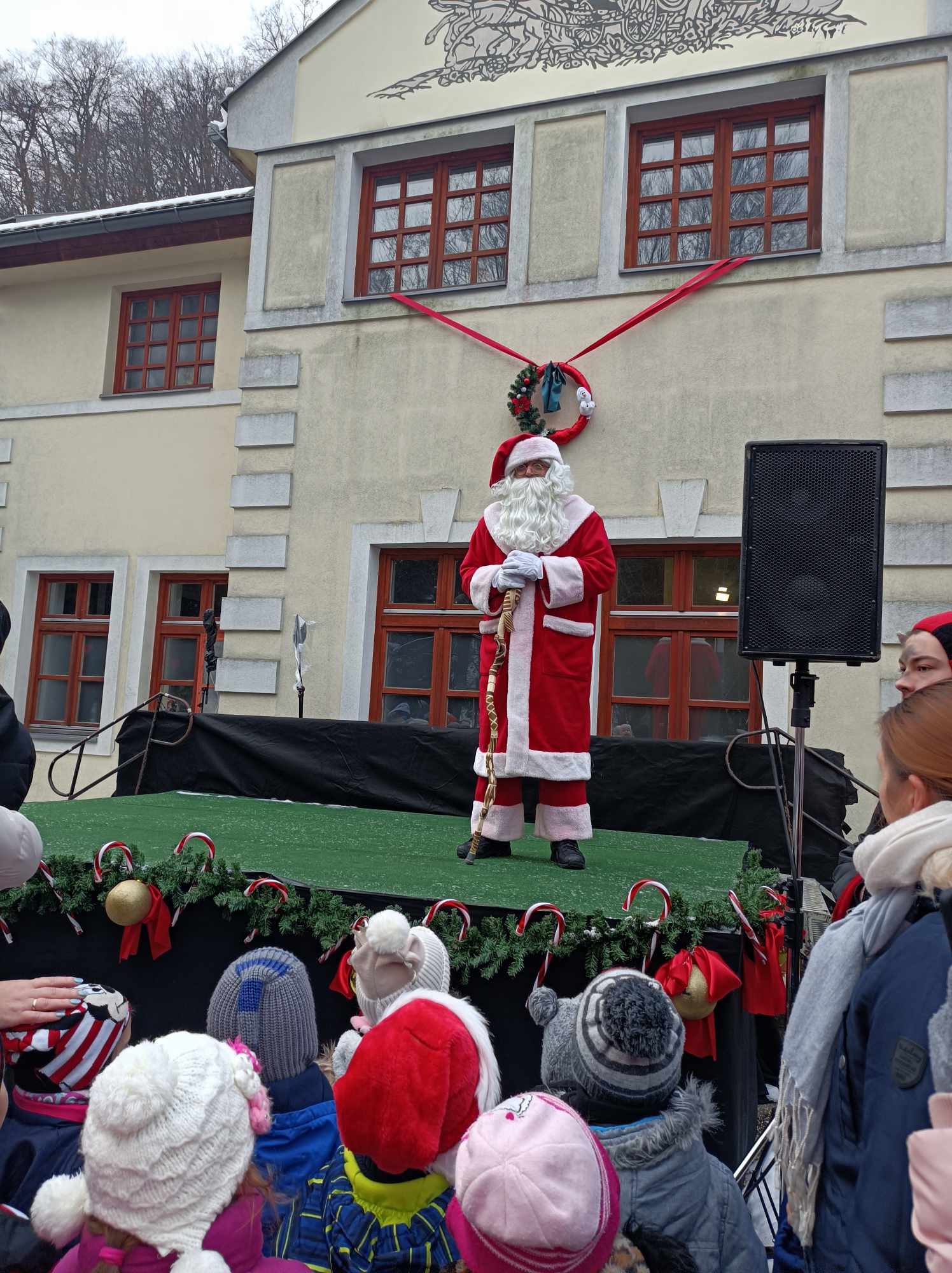 A köszöntő közös dal után elindultunk a Mesebirodalom három helyszínére - a Mikulás barátságos és figyelmes krampuszainak irányításával -, ahol mesejátékokat néztünk meg, majd találkoztak a gyerekek a Mikulással is, aki csomaggal ajándékozta meg Őket.