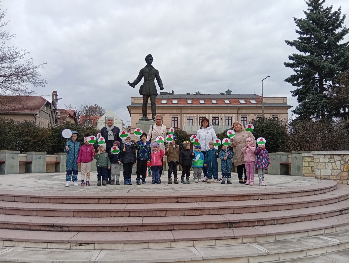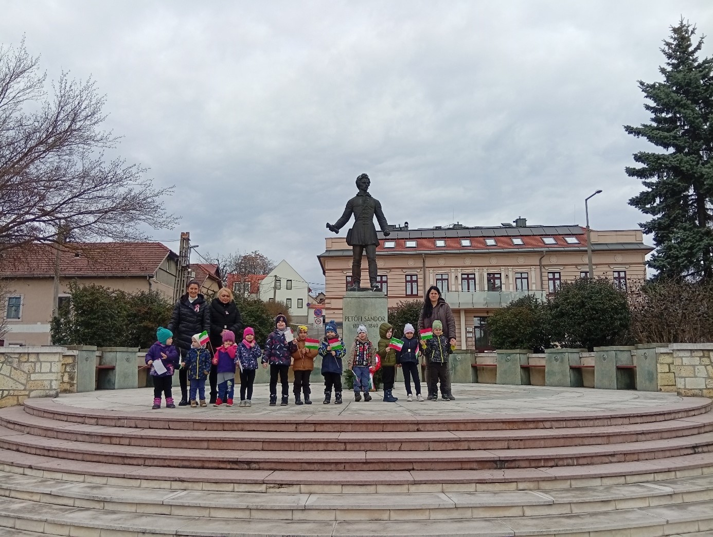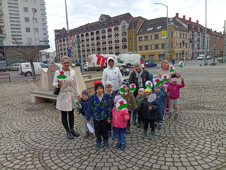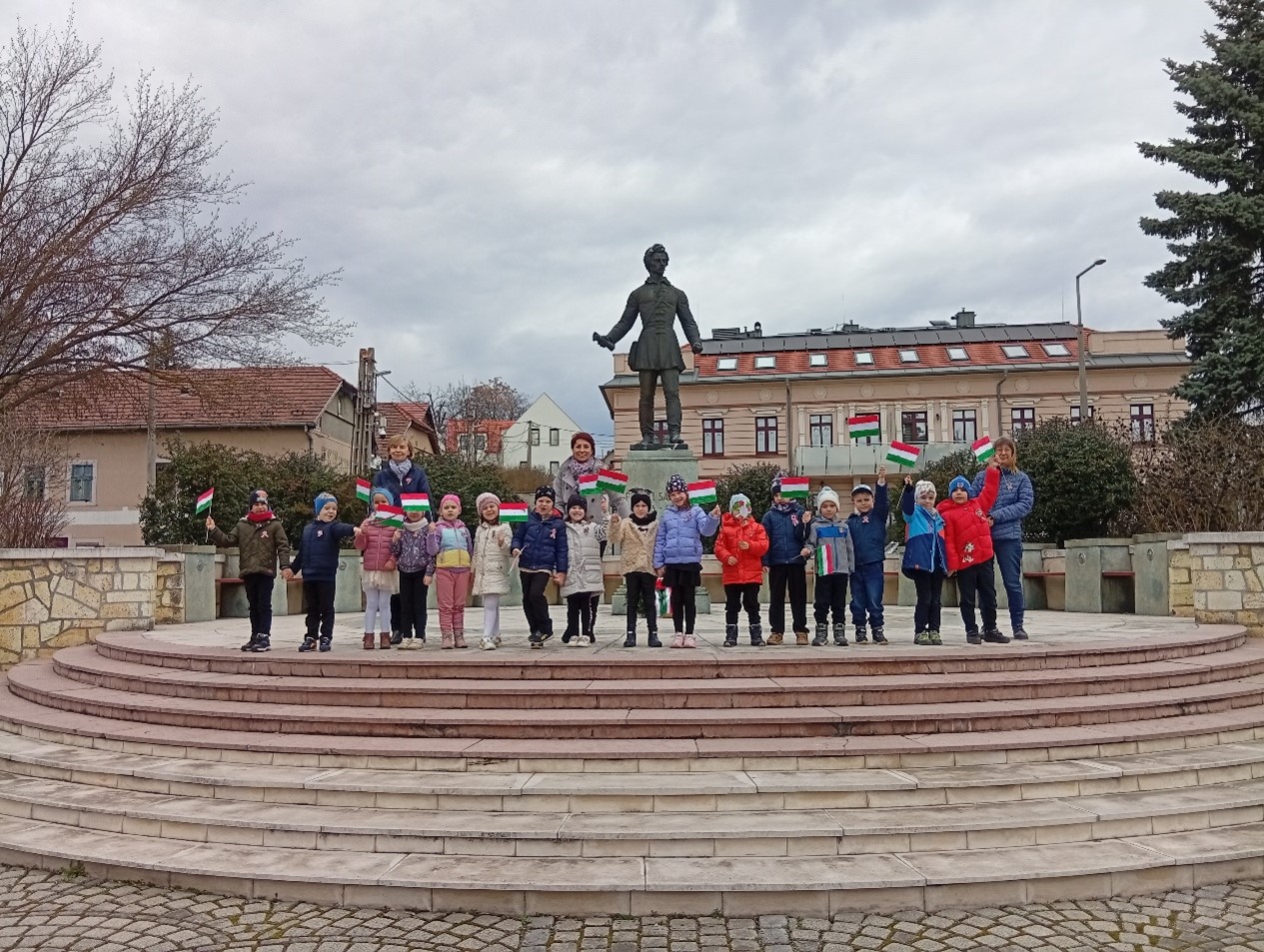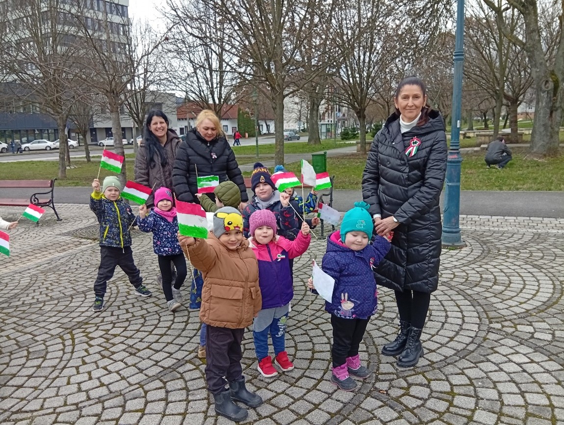 Nemzeti Ünnepünk eseményei, meghatározó személyei, a felnőttek ünneplésében való részvétel mind segíti annak átérzését, hogy fontos eseménye ez egy nagy közösségnek, a magyarságnak, melynek ők is tagjai. Szülőföldünk, hazánk szeretetének átélése, érzékeltetése, a nemzeti identitástudat kialakítása kiemelt feladatunk, melyhez szorosan kapcsolódik a megemlékezés óvodánkon belül és kívül egyaránt. Több évtizedes hagyományunk, hogy a közelgő ünnep előtti napon együtt- az óvoda teljes közössége-ellátogatunk Petőfi Sándor szobrához, ahol szavalunk, énekelünk és elhelyezzük a csoportok által készített jelképeket.