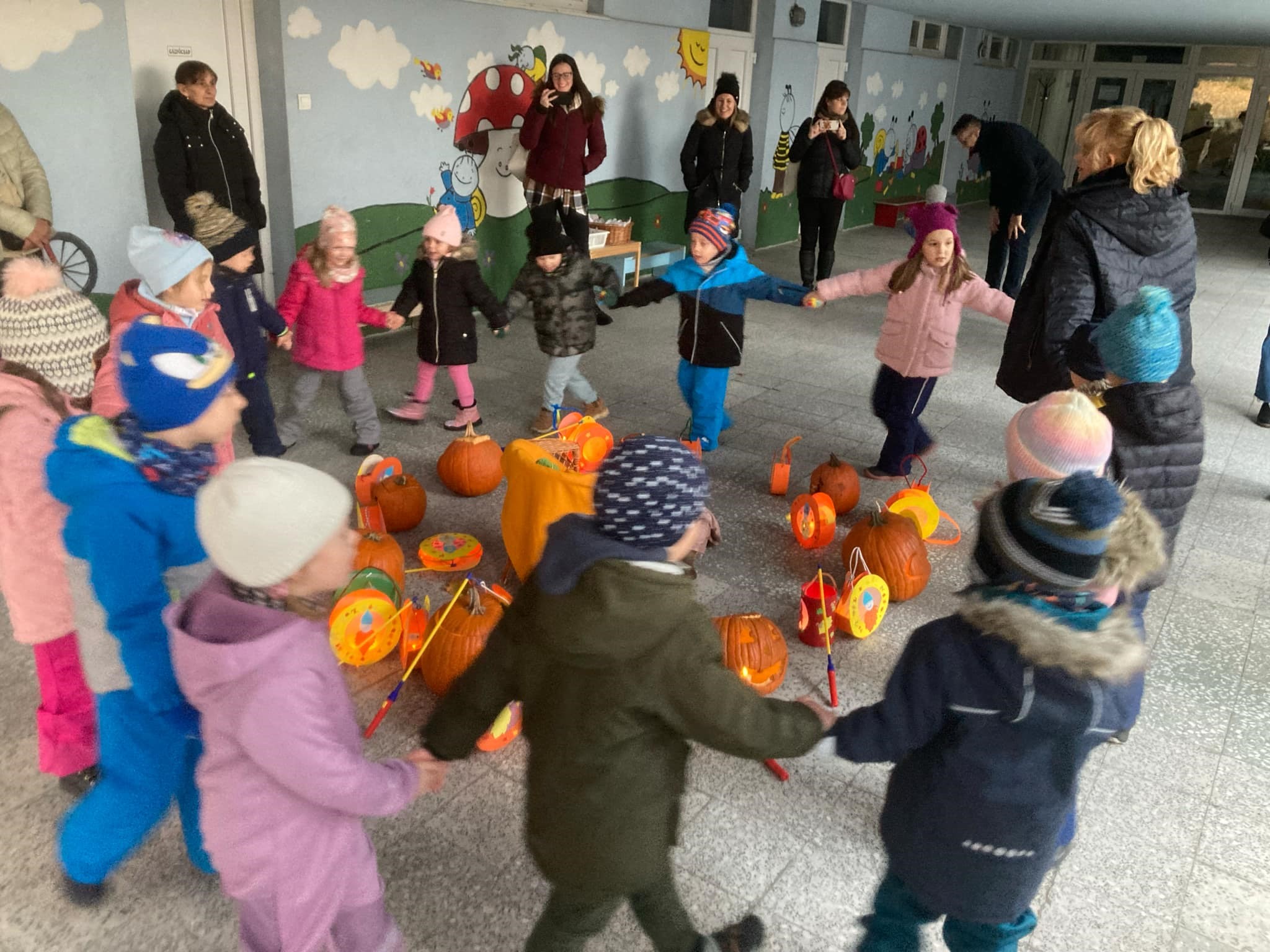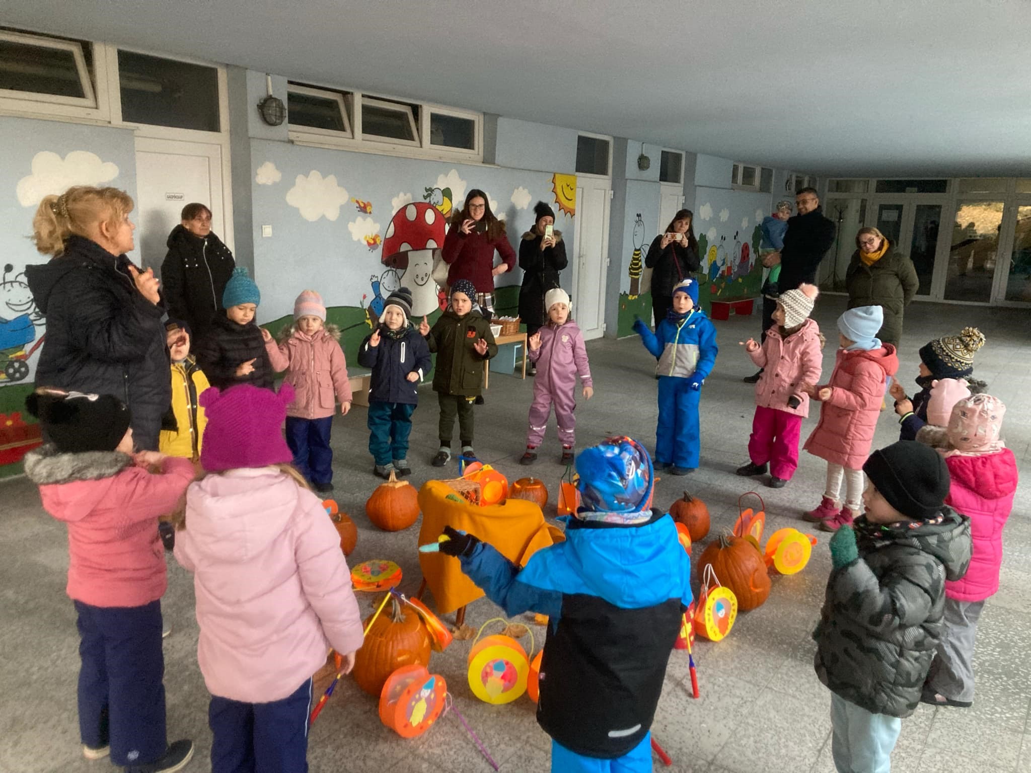 Ritmikus körjátékunkban az ünnepkörhöz kapcsolódva magyar és német nyelven énekeltünk, verseltünk, mondókáztunk, amelyet Márton napján a szülők is láthattak.