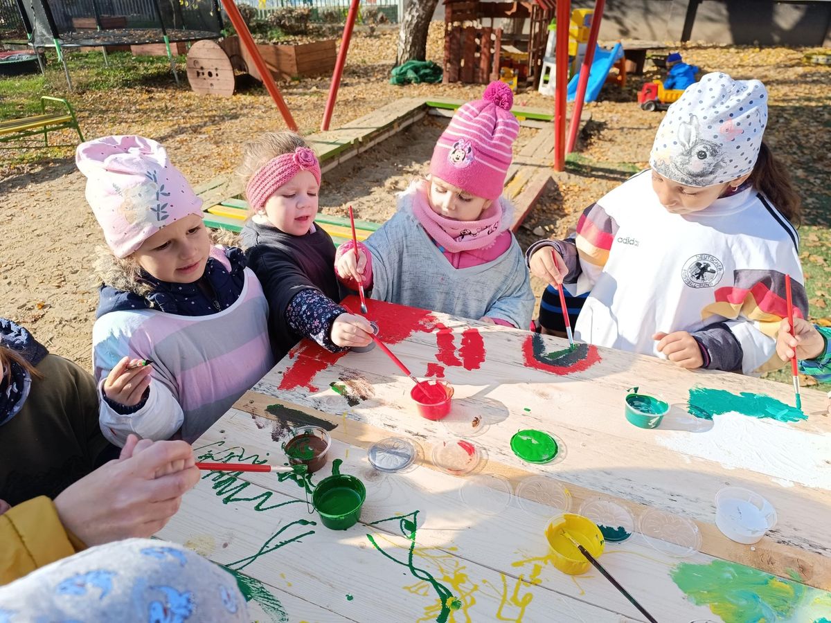 Vidám motívumok készültek, szomorú kutyusok házaira november 7-én, csütörtökön délelőtt a MIÓVI Brunszvik Teréz Sport Tagóvodájában. Jótékonyság: maszatoltak és festettek az intézmény kis óvodásai a menhelyen élő állatok számára.