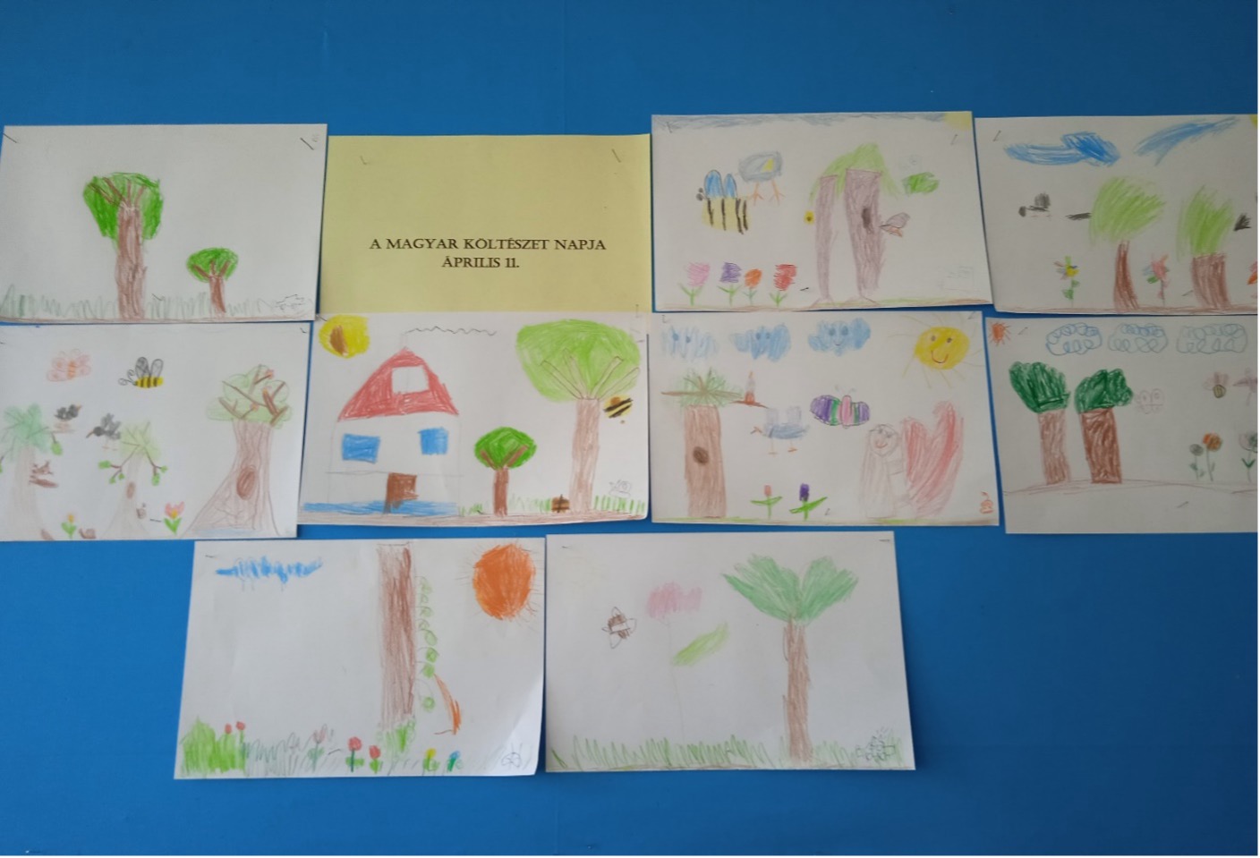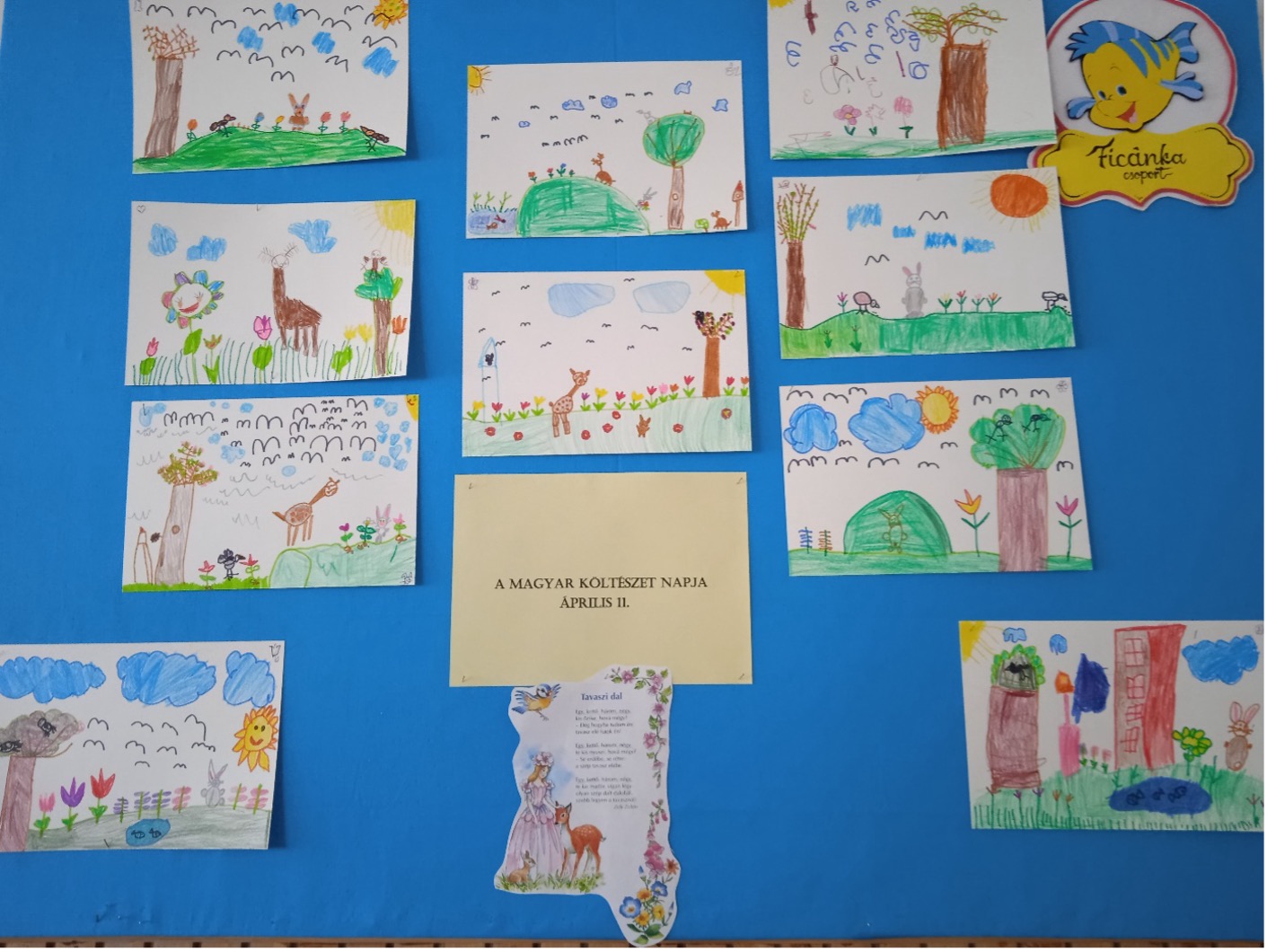 Az óvodai csoportok a kedvenc verseik felidézésével ünnepeltek és a versekről készített rajzaikkal örvendeztették meg a szüleiket is.