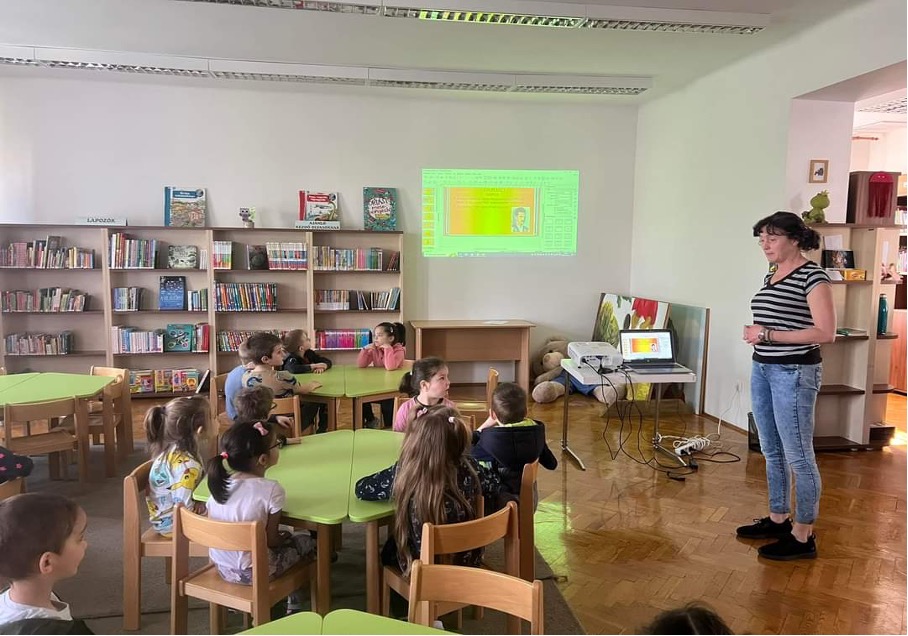A könyvtáros néni mesélt a gyerekeknek József Attiláról, majd közös versmondással, mondókázással, barkácsolással folytatódott az élmény teli délelőtt.