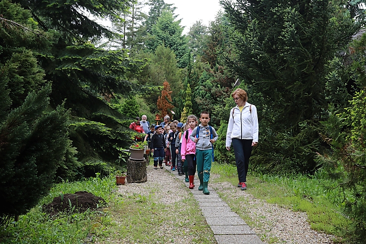 - Hogy mire vagyok a legbüszkébb? A látogatók leginkább a mamutfenyőt szeretik megnézni. Viszont összességében, aki először belép ide, azt mondja, hogy igen különleges atmoszférája van a fenyőkertnek, mintha egy kis meseerdőbe csöppennének, úgy érzik kiszakadtak abból a városi létből, ahonnan érkeztek, mert 5 perccel azelőtt még máshol voltak. Félre téve azt, hogy milyen fajok, nemesítések vannak, talán erre vagyok a legbüszkébb. Bizonyára nagyapa is azt szerette, hogy ide úgy jönnek az emberek, minthogyha egy teljesen más dimenzióba kerülnének. Lenyugszanak, csend, béke honol, lazíthatnak, kiszakadnak a mindennapi stresszből és tényleg feltöltődnek, úgy lépnek ki innen a kapun, hogy felfrissültek. Igen sokan mondják, hogy ide fogunk jönni legközelebb is. A felnőttek mellett a gyerekcsoportok óvodások, alsó tagozatosok keresnek fel minket leginkább. Ők a legfogékonyabbak, mindenen elcsodálkoznak, nyilván igyekszünk nekik a saját szintjükön elmagyarázni a dolgokat. A legjobb számukra, hogy itt szabadon szaladgálhatnak, természetben lehetnek, gyűjtögethetnek, imádnak tobozokat beszerezni. Minden érdekli őket, mindent meg akarnak fogni, szagolni, simogatni. Én azt szeretem, amikor a gyerekek érdeklődők. Szokták mondani néha a nevelők, hogy jaj elnézést, hogy ilyen rosszak a gyerekek. Számomra az a jó, ha aktívak, szaladgálnak, kíváncsiak. Meg hát sokszor a gyerek úgy is tud figyelni, hogy éppen mást csinál. Van, amikor kérdéseket is felteszünk, ki-mit jegyzett meg? És tudják rá a választ. Én úgy veszem észre, hogy kikapcsolódva, élményekkel telve, gazdagodva térnek haza, mint e riport felvételekor a MIÓVI Leszih Andor Úti Tagóvoda gyerekei. Vannak olyan iskolák, óvodák, amelyek már nem először, hanem rendszeresen jönnek hozzánk – meséli Eszter, s közben a fán egy vörös mókus jelent meg, ott billegette magát.
