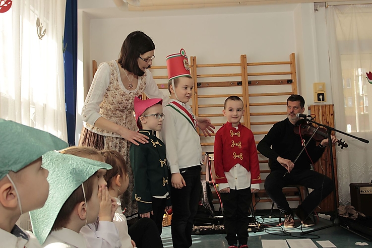A nemzeti ünnep kapcsán a MIÓVI Eszterlánc Néphagyományőrző Tagóvodájában lépett fel az Esztenás együttes csütörtökön. A népdalok éneklése, a tánc és a forradalmi „szerepjáték” a tetőpontját jelentette az ovi március 15-ei készülődésének: verseken, dalokon és új szavakon keresztül ismerkedtek a gyerekek 1848-49 eszmeiségével.