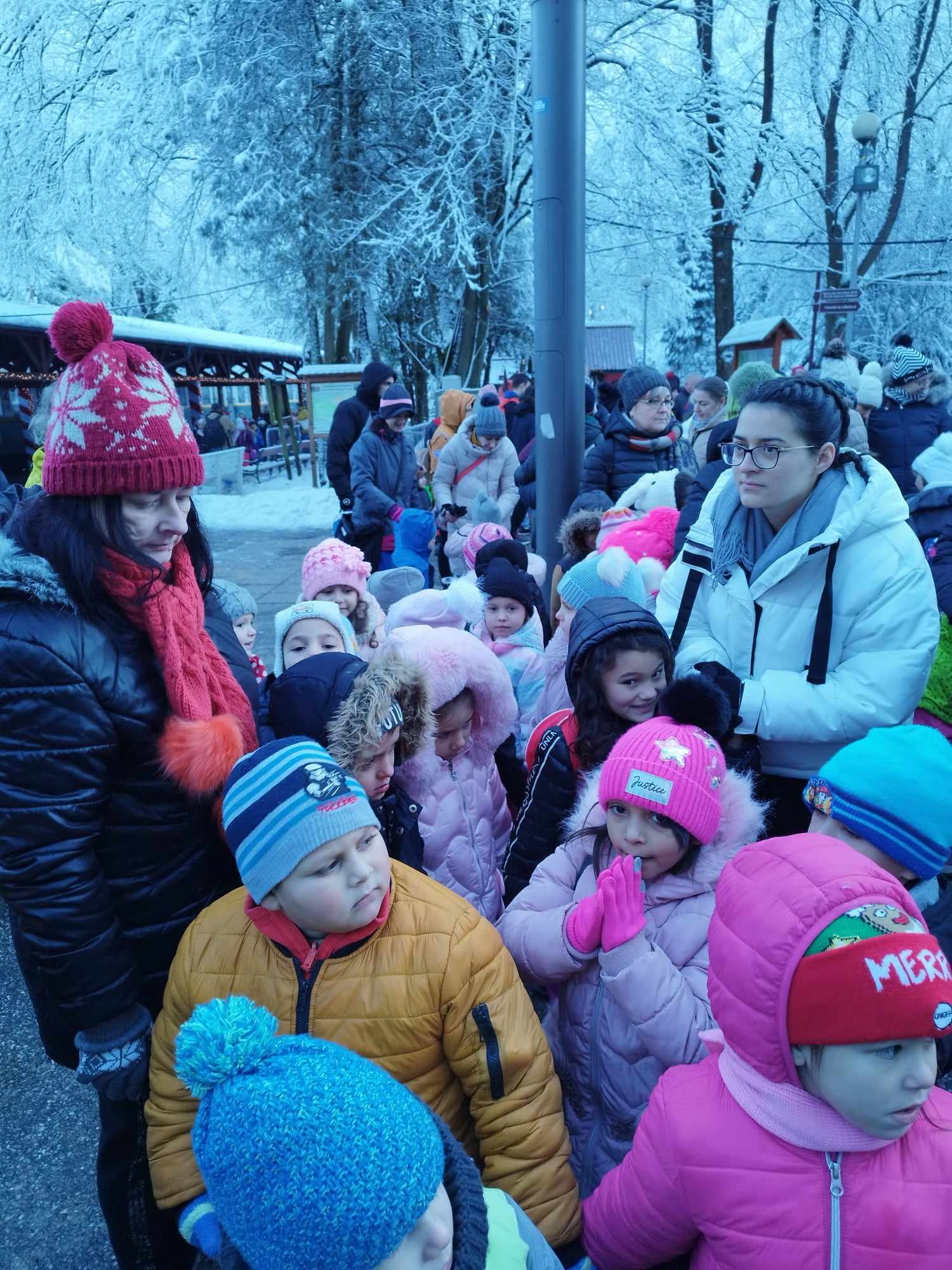 Amikor Lillafüredre értünk úgy éreztük, hogy tényleg a mesébe csöppentünk. A kisvasút állomásának környéke gyönyörű karácsonyi díszbe öltözött és körös-körül mindent hó borított. A gyermekek csak-ámultak és bámultak, amikor mindenfelől meseszereplők érkeztek. Őrömmel ismerték fel kedvenc mesehőseiket, a bátrabbak még egy-egy ölelésre is odamentek hozzájuk.