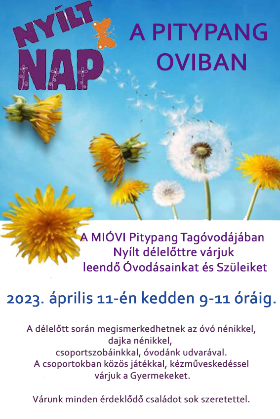 A MIÓVI Pitypang Tagóvodájában Nyílt délelőttre várjuk leendő Óvodásainkat és Szüleiket