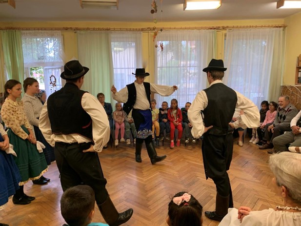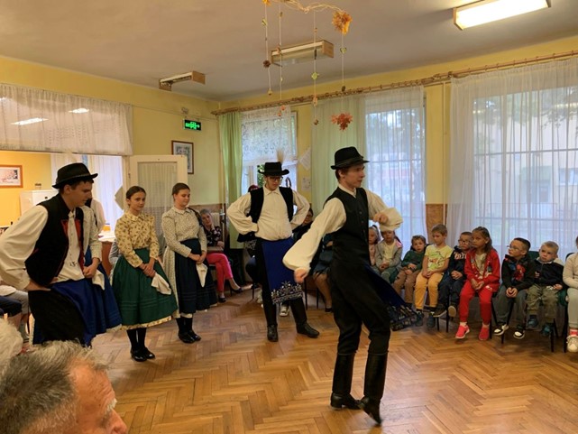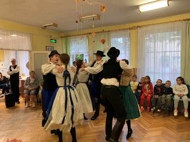 A gyermekek megcsodálhatták az idős hölgyek és urak gyönyörű, alkalomhoz illő népviseleti ruháit, hallgatták a kisbíró dobbal kísért nyitóbeszédét. Ezután, az Avasi Néptánc Együttes tagjai tartottak fergeteges táncbemutatót, majd a szüreti jó hangulat táncházzal folytatódott. Közösen táncoltak gyermekek, idősek, megünnepelve a sok fáradságos munkát lezáró szüretet és a bőséges termést. Pihenésképpen terített asztalhoz ülhettek a táncban elfáradt gyermekek és felnőttek, frissen sült pogácsát és gyümölcsöket kóstoltak.
