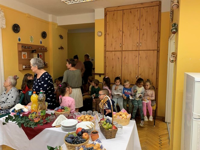 A tavalyi évhez hasonlóan óvodánk két csoportja a generációk közötti megerősítő kapcsolat jegyében, közös szüreti ünnepségen vett részt a Bulgárföldi Szolgáltatási központ -és Gondozóházzal közösen.