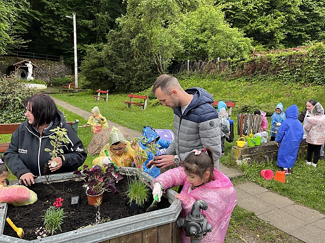 A gyerekek nagyon lelkesen láttak neki a munkához, az előkészületek után is fáradhatatlanul dolgoztak a szorgos kezecskék. Lelkesedésüket még a csepergő eső sem vetette vissza. Kedves jelenség volt, ahogyan a színes esőkabátos kis manók vizet hordtak a Vilma-forrásból, és apró játékvödreikkel locsolták meg a frissen beültetett virágokat - tájékoztatta portálunkat az önkormányzati képviselő.